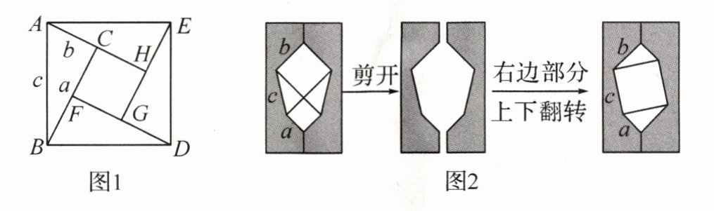 赵爽利用 4 个全等的直角三角形拼成如图 1 所示的“弦图”,其中 a,b 和 c 分别表示直角三角形的两直角边和斜边,四边形 ABDE 和四边形 CFGH 是正方形.