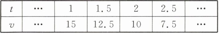 (1)由题意可知,刹车时的平均变化速度为$\frac{10-15}{2-1}=-5$(m/s). (2)v=20-5t.