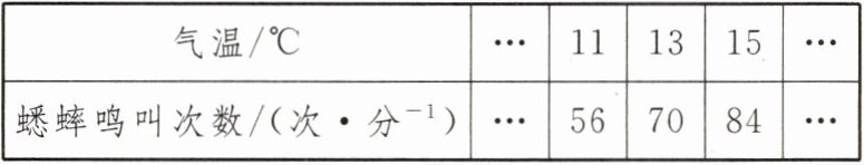6. 大自然中的音乐与数学有着奇妙的联系,蟋蟀鸣叫就是其中的一种。据悉在一定温度范围内,蟋蟀鸣叫的次数与气温关系密切,项目化学习小组统计了本地不同气温下某种蟋蟀每分钟鸣叫的次数,汇总如下表:
