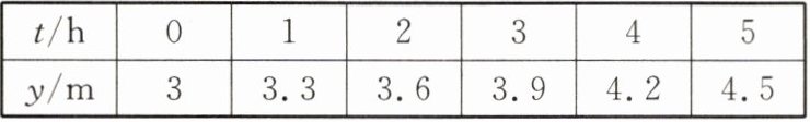 (3)水位高度y与时间t之间的关系式为y=0.3t+3.