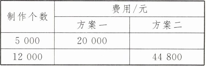(3)由题意,得2.4x+16 000=4x,解得x=10 000.答:需要制作10 000个纸箱时,选择方案一和方案二的费用相同.
