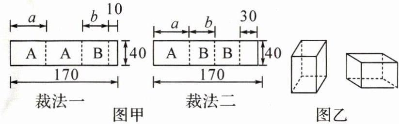 7. 我市某包装生产企业承接了一批上海世博会的礼品盒制作业务,为了确保质量,该企业进行试生产.他们购得规格是170cm×40cm的标准板材作为原材料,每张标准板材再按照裁法一或裁法二裁下A型与B型两种板材(如图甲,单位:cm).