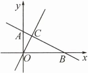 7. (本课时 T4 变式) 如图,直线 $AB:y = -\frac{1}{2}x + 2$ 与直线 $OC:y = kx$ 相交于点 $C(1,a)$,则关于 $x,y$ 的方程组 $\begin{cases}kx - y = 0,\frac{1}{2}x + y = 2\end{cases} $ 的解为______