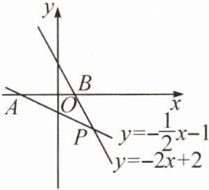 13. 如图,在平面直角坐标系中,直线 $y = -\frac{1}{2}x - 1$ 与直线 $y = -2x + 2$ 相交于点 $P$,并分别与 $x$ 轴相交于点 $A,B$.
