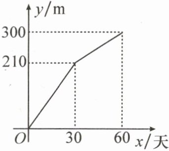 3. 甲、乙两个工程组同时挖掘沈白高铁某段隧道,两组每天挖掘长度均保持不变。合作一段时间后,乙组因维修设备而停工,甲组单独完成了剩下的任务。甲、乙两组挖掘的长度之和 $ y $(m)与甲组挖掘时间 $ x $(天)之间的关系如图所示。