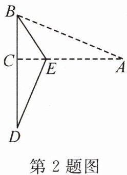 2. 如图,在三角形纸片 $ABC$ 中,$\angle ACB = 90^{\circ}$,$BC = 5$,$AB = 13$,在 $AC$ 上取一点 $E$,沿 $BE$ 折叠纸片,使 $AB$ 的一部分与 $BC$ 重合,点 $A$ 与 $BC$ 延长线上的点 $D$ 重合,则 $CE$ 的长为______