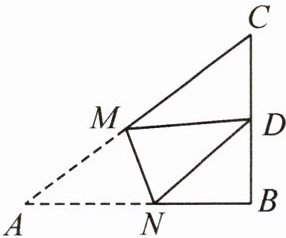 【思路点拨】由 $\triangle ABC$ 的三边长满足勾股定理可知 $\triangle ABC$ 是直角三角形,$\angle B = 90^{\circ}$。先求得 $BD$ 的长,由折叠的性质可知 $AN = DN$,设 $BN = x$,则 $AN = DN = 8 - x$,在 $Rt\triangle DBN$ 中,由勾股定理列出关于 $x$ 的方程求解即可。
