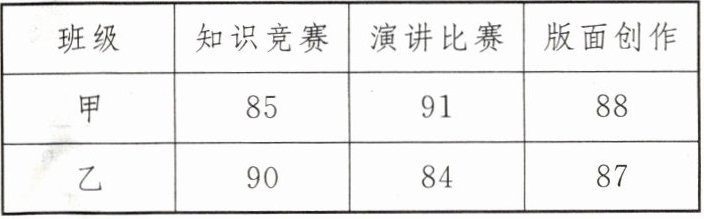 (2) 如果将知识竞赛、演讲比赛、版面创作按 $5:3:2$ 的比例确定最终成绩,请通过计算说明甲、乙两班谁将获胜.