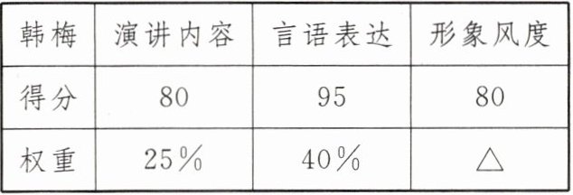 5. 下表是韩梅参加演讲比赛的得分表(单位:分),表格中“△”部分被污损,她的总得分是(