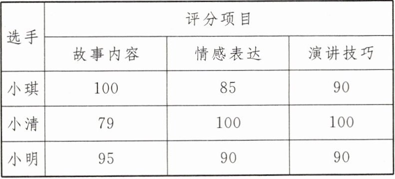 4. 某校举办“身边的温暖故事”主题演讲比赛,其中前三名选手的成绩(单位:分)统计如下表.
