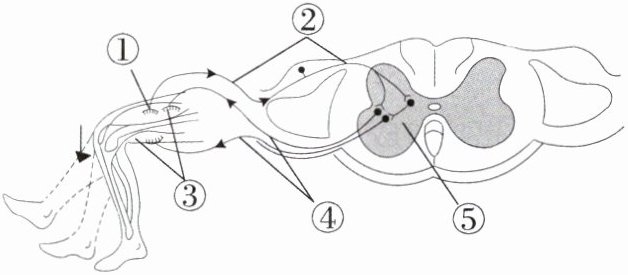 5. (上海中考)下图为膝跳反射过程示意图,下列叙述错误的是(