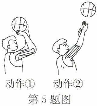 5. 篮球是青少年喜欢的一项运动,经常打篮球,能促进骨骼发育、提高反应速度。如图表示投篮动作,相关叙述正确的是(