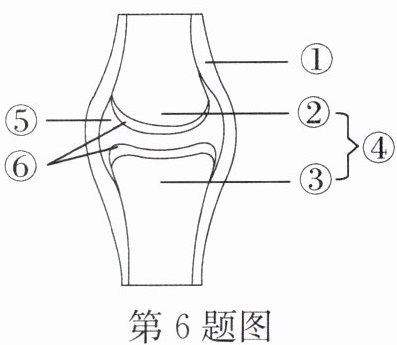 D [解析]关节主要是由[①]关节囊、[④]关节面和[⑤]关节腔组成的,A错误。关节在运动中起支点的作用,B错误。关节周围由[①]关节囊包裹着,关节囊内外有韧带,增加了关节的牢固性,C错误。