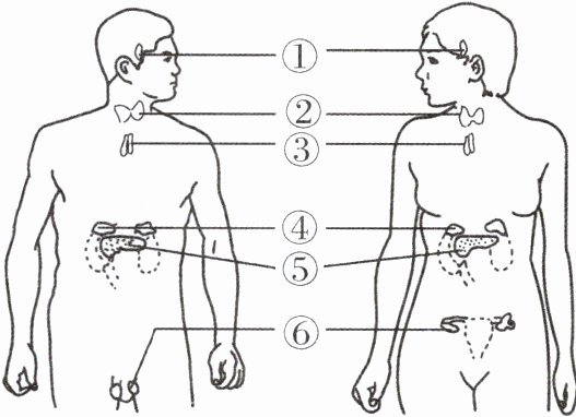 D.处于青春期的男孩和女孩出现心理和身体变化的主要因素是⑥产生了分泌物并且发挥了作用