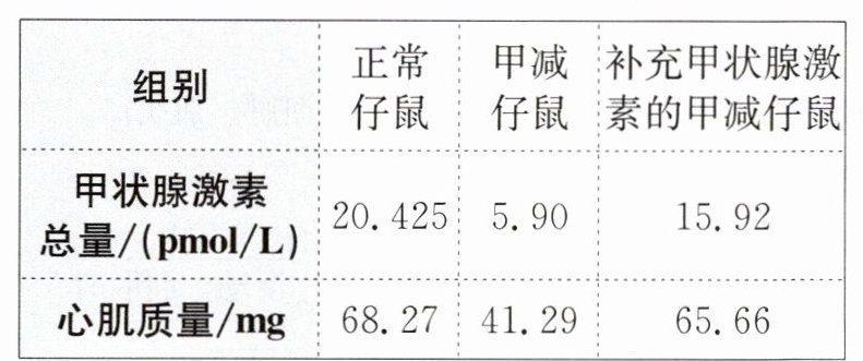 。(3) 为了寻求治疗甲减患者心脏病的方法,科研人员对大鼠的仔鼠进行了如下表所示实验。