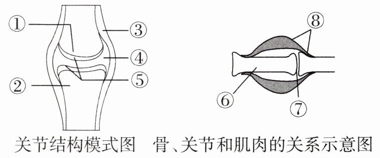 例3 动物的运动依赖于一定的身体结构。如图是关节结构模式图及骨、关节和肌肉的关系示意图,其中相关叙述不正确的是(