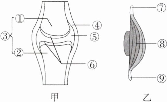 6.(滨州中考,★★☆)校园内的“阳光体育”活动促进了青少年的健康成长。甲、乙两图分别是关节和骨骼肌的结构示意图。下列叙述正确的是(