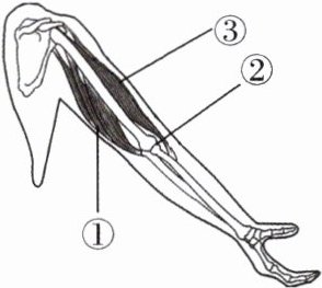 B [解析][③]肱二头肌通过两端的肌腱绕过关节附着在不同的骨上,B错误。