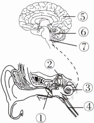 B [解析]反射的结构基础是反射弧,在[⑤]大脑皮层听觉中枢形成听觉的传导路径为[①]鼓膜→听小骨→[③]耳蜗内的听觉感受器→听神经→[⑤]大脑皮层的听觉中枢,此过程没有经过完整的反射弧,不属于反射,B错误。