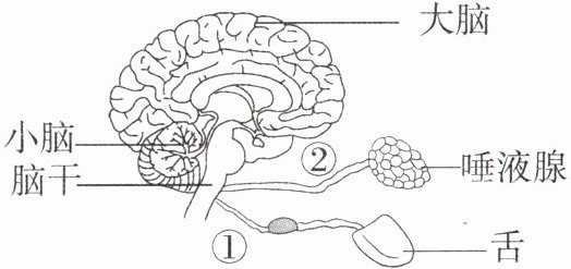 反射,请用图中文字、数字和箭头表示该反射活动的传导途径:舌→①→脑干→②→唾液腺