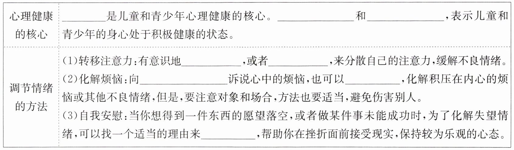 心情愉快 良好的情绪 适度的情绪反应 转移话题 做点别的事情 亲人、老师或知心朋友 大哭一场 安慰自己