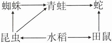 B.最长食物链是水稻→昆虫→蜘蛛→青蛙→蛇