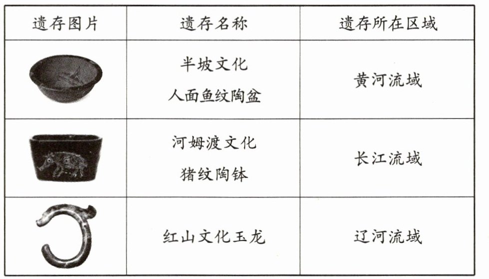 材料一 中国境内古人类在进入原始农耕时代后,生活丰富多彩。下面所示表格是黄河、长江和辽河三大流域的考古遗存(部分)。