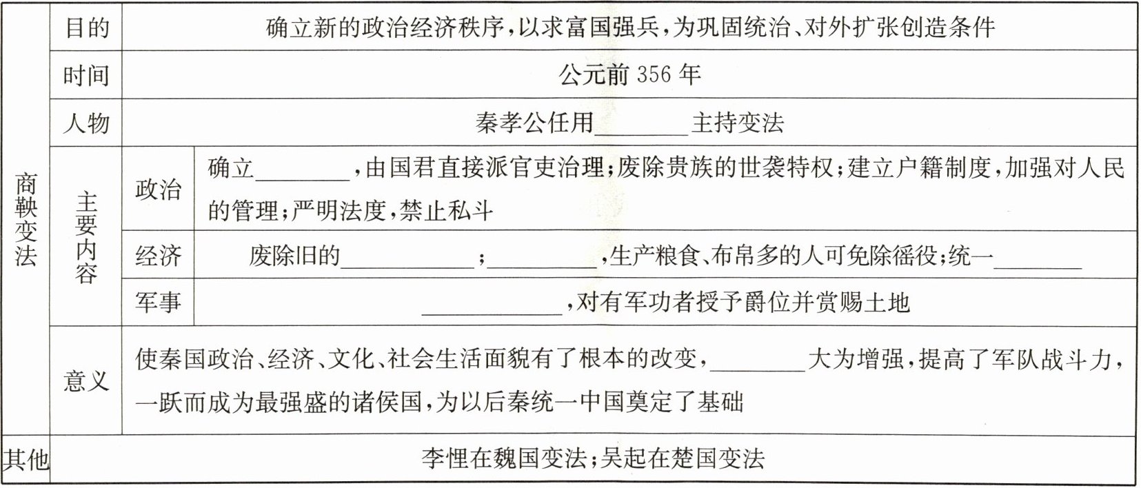 商鞅 县制 土地制度 鼓励耕织 度量衡 奖励军功 综合国力