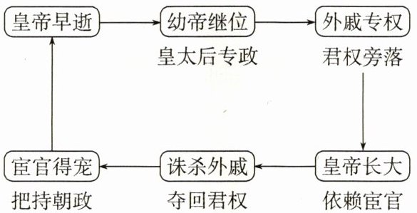 3. 东汉和帝幼年即位,窦太后临朝称制,窦氏一族把持朝政,“权贵显赫,倾动京师”。汉和帝不甘为傀儡,与宦官密谋铲除了窦氏一族,宦官因功封侯,开始把持朝政。这反映出东汉后期( )