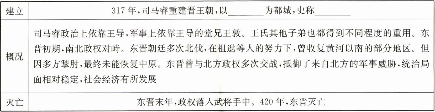 知识点一 东晋的兴亡