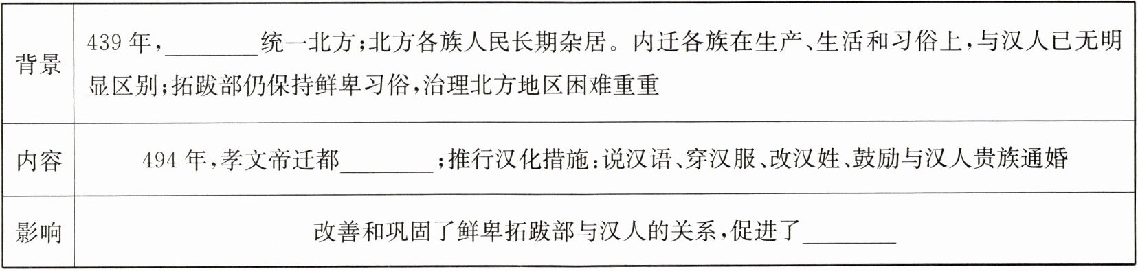 知识点二 北魏孝文帝改革