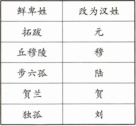(2)根据材料二并结合所学知识,比较北魏孝文帝改革前后北魏社会的变化。