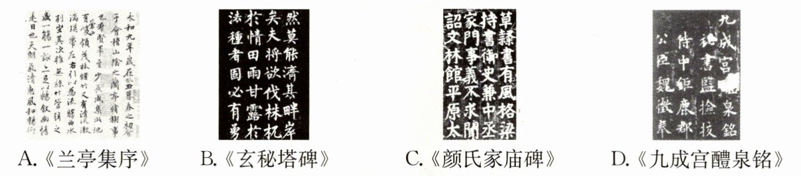 A 解析:根据题干“北魏统治者重视书法艺术”“这种书体带有汉隶笔法”并结合所学知识可知,北魏时期,孝文帝改革促进了民族交融,魏碑书体带有汉隶笔法,是民族交融的表现。