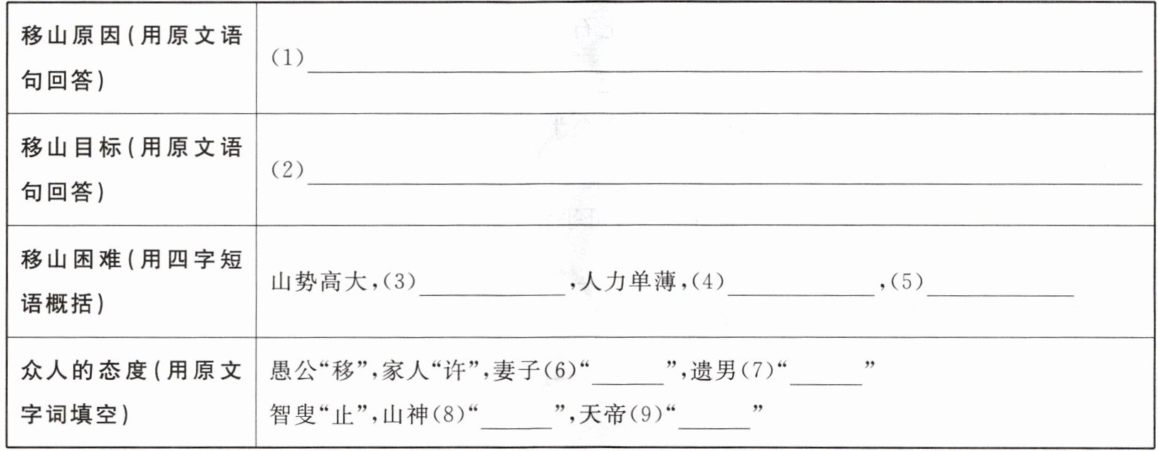 2. 操蛇之神对愚公的行动感到害怕,从侧面反映了愚公移山的坚定和执着,“帝感其诚”则代表了古代劳动人民的美好愿望:自然能给人类让步。