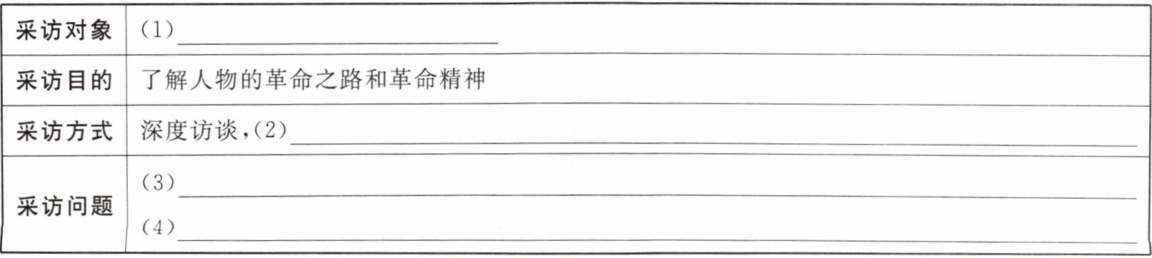 3. 迁移运用《红星照耀中国》里提到了许多伟大人物,如毛泽东、周恩来、朱德、彭德怀等,假如你能穿越时空采访他们,请你从这些人物中选择一位,补全下列采访提纲。