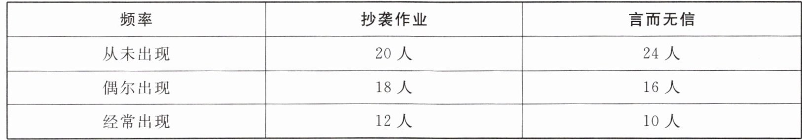(2)【做诚信调查】此次活动中,该班级进行了校园诚信情况调查,调查结果见下表: