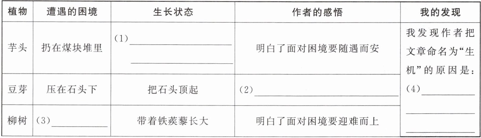 4. 小广在做阅读笔记时,遇到了一些困难,请你协助他完成。