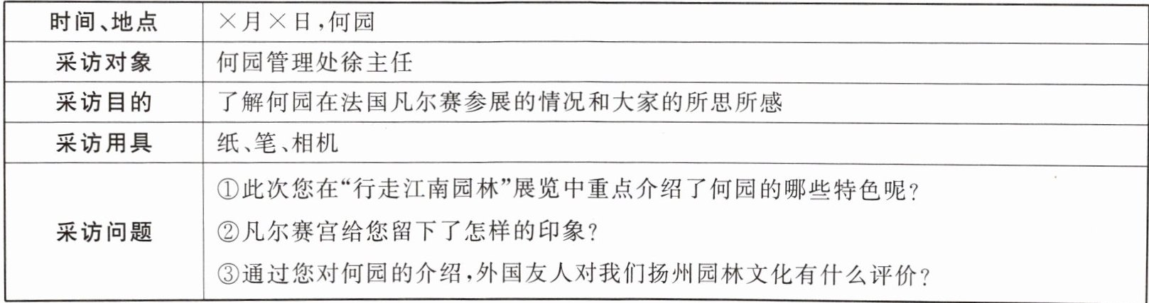 (2) 记者准备就何园管理处徐主任的法国之行进行采访,下列采访提纲中,请你帮忙删去一个不合适的采访问题,将另两个问题排序,并在此基础上再提一个问题。