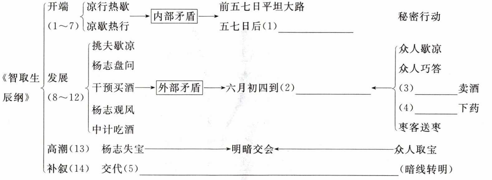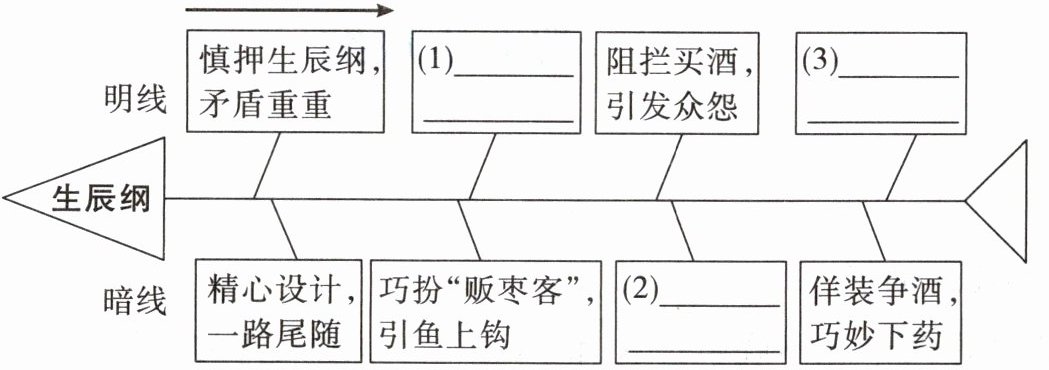 1.小说围绕生辰纲的争夺,采取了明暗结合的双线结构。结合课文内容,完成下面的思维导图,并回答问题。