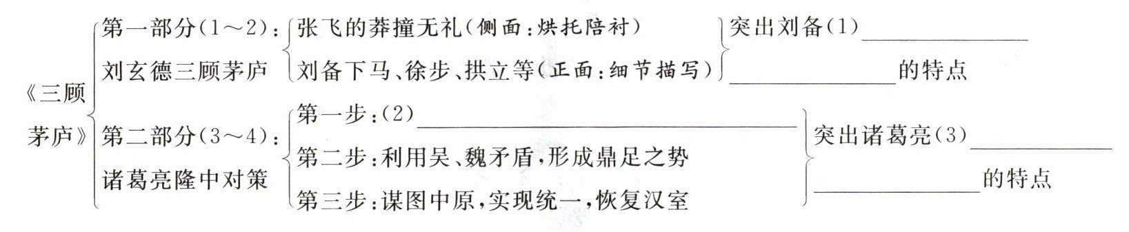 1.①从对诸葛亮的外貌描写,可以看出诸葛亮具有潇洒儒雅的气质。②从诸葛亮对天下形势的分析中,可以看出诸葛亮具有能言善辩、胸怀韬略、智慧过人的特点。③从诸葛亮嘱咐诸葛均不要荒芜田亩,等他“功成之日,即当归隐”,可以看出诸葛亮淡泊名利。