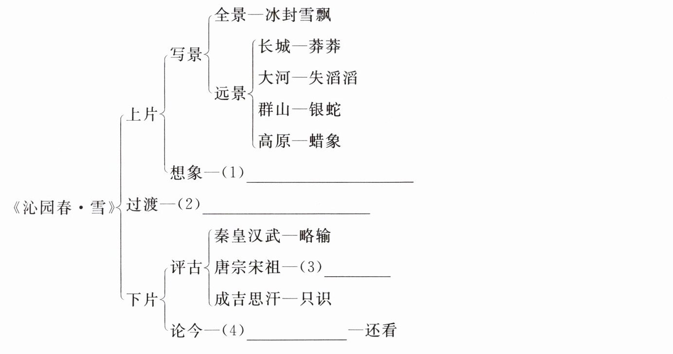 )。(4)惜秦皇汉武,/略输文采;/唐宗宋祖,/稍逊fēngsāo(