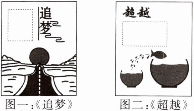 示例一:我喜欢图一。图一的主题“追梦”,是我们初中生生活的真实写照。地平线上一轮红日象征着我们的理想,一条通向理想的起起伏伏的路,好似我们追梦的历程。示例二:我喜欢图二。图二的“超越”,抓住了我们青春岁月的特征。画面上有一条鱼在奋力上跃,从小鱼缸跃向更大的鱼缸,就像此时的我们,正努力向心仪的高中奋进。