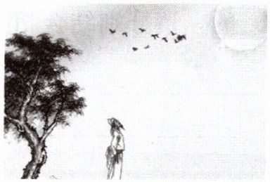 制出了右图(右上角是明月,中间是一群大雁),但其中“一群大雁”的场