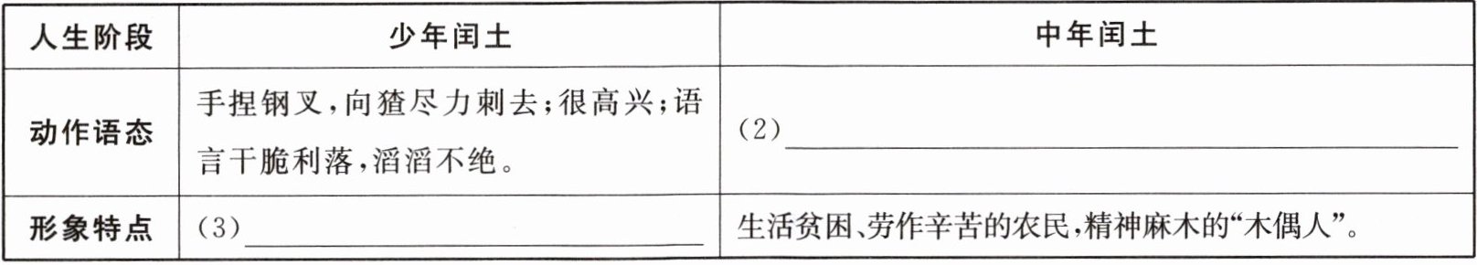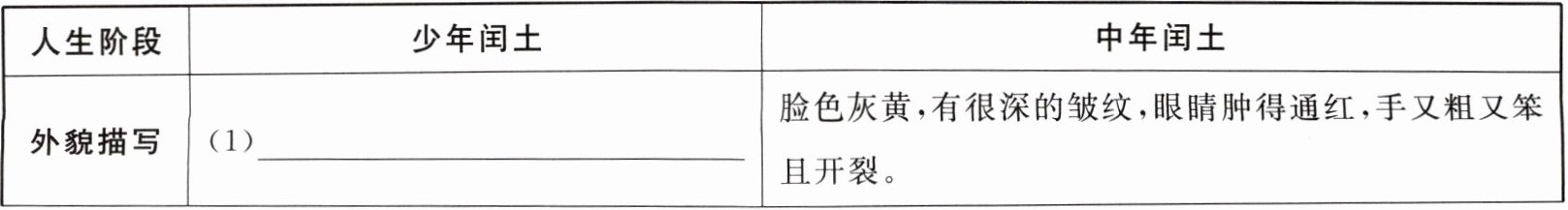 1.找出文中刻画闰土的内容,完成下面的表格。