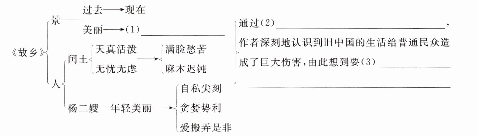 (2)故乡景物的变化和人物(闰土、杨二嫂)的巨大反差