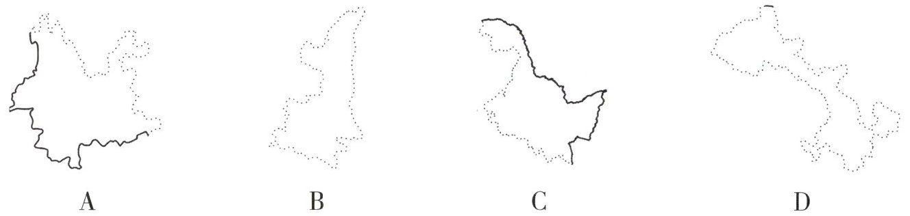 5. 我国某地区民居多高脚竹楼,那里丛林遮天蔽日,林中常见“孔雀开屏、大象戏水”的趣景。该地区最有可能位于如图省级行政区中的(
