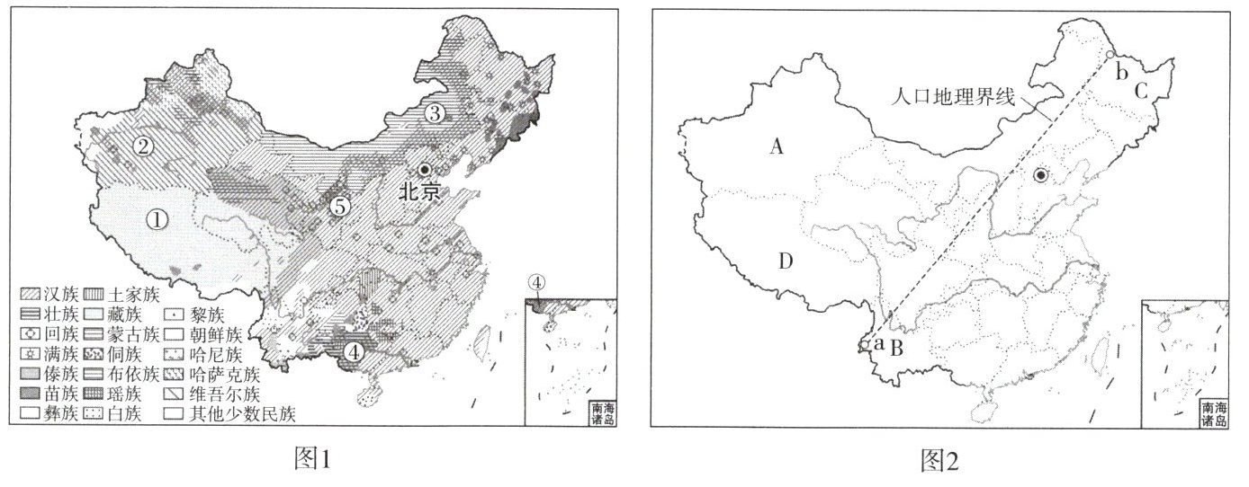 (1)图2中A省区主要的少数民族是