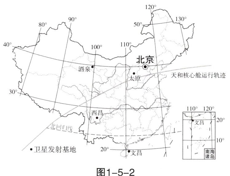 8. 图1-5-2是我国空间站天和核心舱某时刻过境我国轨迹示意图。图中天和核心舱过境轨迹穿过我国的省级行政区有(