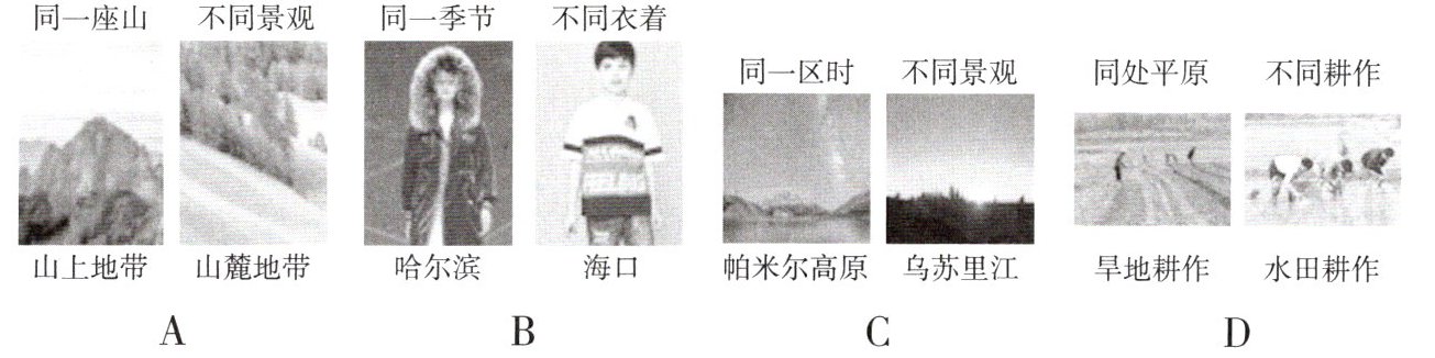 14. 我国幅员辽阔,东西相距5000多千米,跨经度60多度,这就造成了图中的(