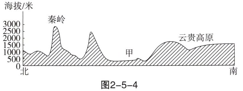 13. 读图2-5-4我国沿106°E地形剖面图,图中甲地形区是(